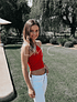 Auto ajustable en cuello con sus 2 tirantes lo amarras según tu comodidad.